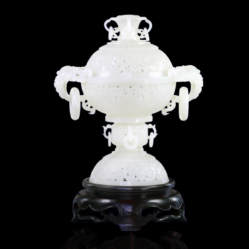 雙耳花葉熏-和田玉