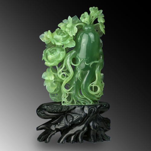 此款由天然優(yōu)質岫玉精心巧雕而成,以浮雕、立雕、鏤雕等多種工藝雕琢人參、牡丹、錢幣,線條明快,柔美流暢,簡約精美,令人賞心悅目。牡丹寓意富貴,前途光明,與象征財富的錢幣、諧音“人生”的人參構成人生富貴的美好寓意。擺放一款在室內,情趣高雅,時尚不凡!