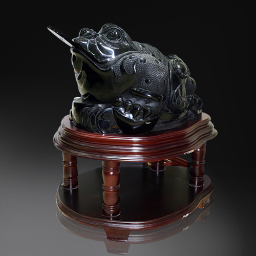 融入圓雕,浮雕手法精心雕琢的瑞獸三足金蟾,工藝細(xì)膩,造型豐滿,生動逼真。傳說金蟾為靈物瑞獸,是對主人有利的招財飾物,能催旺財氣。人們相信蟾能辟兇邪,鎮(zhèn)宅,助長壽,是主富貴的首選吉祥之物,故有“得金蟾者必大富大貴”之說。三足金蟾壽命很長,傳說可以活到三千歲,得之者無不大富,金錢纏身。故金蟾代表“祿”。
